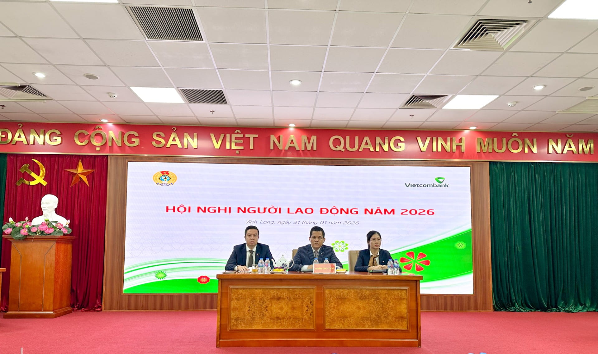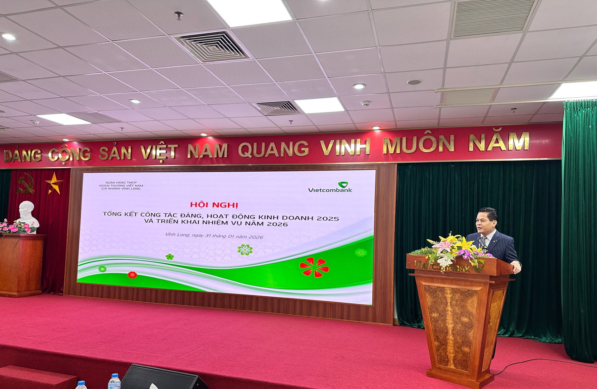 Sáng ngày 31/01/2026, Vietcombank Vĩnh Long đã trang trọng tổ chức Hội nghị tổng kết công tác Đảng và hoạt động kinh doanh năm 2025, triển khai nhiệm vụ năm 2026, đồng thời tổ chức Hội nghị Người lao động năm 2026 với sự tham dự đầy đủ của toàn thể cán bộ và người lao động tại chi nhánh.