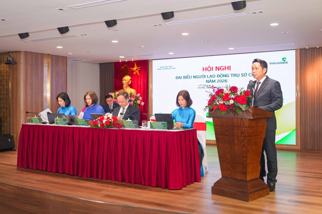 Sáng ngày 12/3/2026, tại Hà Nội, Trụ sở chính (TSC) Ngân hàng TMCP Ngoại thương Việt Nam (Vietcombank) đã tổ chức thành công Hội nghị đại biểu Người lao động (NLD) năm 2026 dưới hình thức trực tiếp kết hợp truyền hình hội nghị.