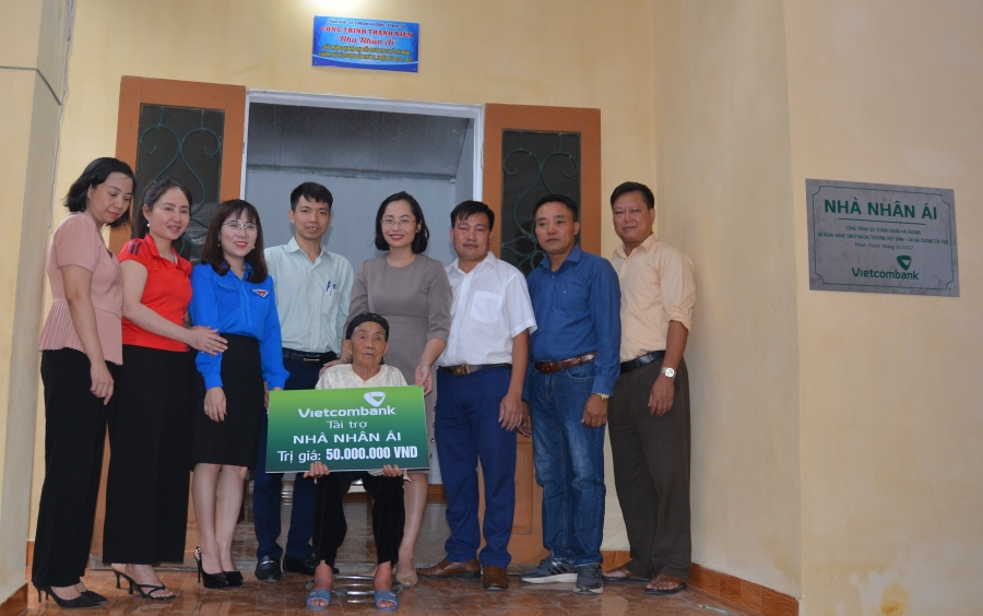 Bà Đoàn Thị Đậm là hộ nghèo, có hoàn cảnh đặc biệt khó khăn, đang sinh sống trong căn nhà được xây từ năm 2003 nhưng đã xuống cấp nghiêm trọng. Nhằm thể hiện trách nhiệm với cộng đồng và tiếp tục phát huy tinh thần “tương thân tương ái”, thông qua Thành Đoàn Hải Dương, Vietcombank Hải Dương đã đóng góp xây dựng căn nhà nhân ái cho bà Đoàn Thị Đậm với số tiền hỗ trợ là 50 triệu đồng.