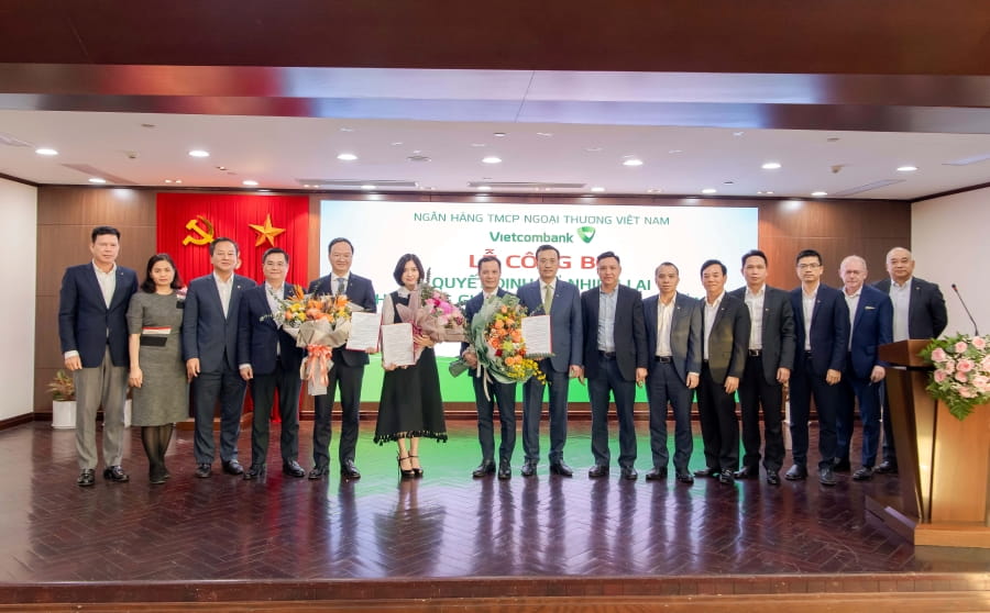 Tại buổi lễ, ông Đặng Bình Nguyên - Trưởng Ban Tổ chức & Nhân sự đã công bố các quyết định của HĐQT Vietcombank về việc bổ nhiệm lại một số thành viên Ban lãnh đạo. Theo đó, tại quyết định số 3199/QĐ-VCB-TCNS ngày 14 tháng 12 năm 2022, HĐQT Vietcombank bổ nhiệm lại bà Phùng Nguyễn Hải Yến giữ chức vụ Phó Tổng Giám đốc Vietcombank kể từ ngày 15/12/2022. Tại quyết định số 3195/QĐ-VCB-TCNS ngày 14 tháng 12 năm 2022, HĐQT Vietcombank bổ nhiệm lại ông Lê Quang Vinh giữ chức vụ Phó Tổng Giám đốc Vietcombank kể từ ngày 15/12/2022. Tại quyết định số 3189/QĐ-VCB-TCNS ngày 14 tháng 12 năm 2022, HĐQT Vietcombank bổ nhiệm lại ông Lê Hoàng Tùng giữ chức vụ Kế toán trưởng Vietcombank kể từ ngày 15/12/2022. Thời hạn giữ chức vụ của các nhân sự được bổ nhiệm lại là 5 năm.