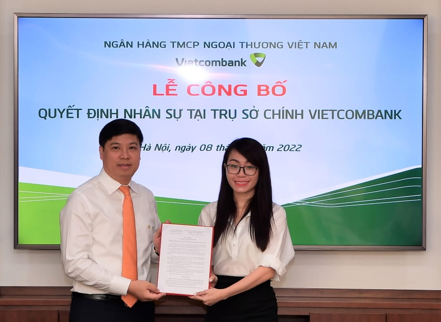 Tại buổi lễ, bà Nguyễn Thị Thái Hà - Phó Trưởng Ban Tổ chức & Nhân sự đã công bố quyết định của Tổng Giám đốc Vietcombank về việc tuyển dụng và bổ nhiệm cán bộ. Theo đó, tại quyết định số 2809/QĐ-VCB-TCNS ngày 02/11/2022, Tổng Giám đốc Vietcombank đã tuyển dụng và bổ nhiệm bà Bùi Thị Phương Thảo - Chuyên gia cao cấp Cải tiến và Phát triển quy trình Khối Vận hành Ngân hàng TMCP Kỹ thương Việt Nam giữ chức vụ Phó Trưởng phòng Quản lý chất lượng Ngân hàng TMCP Ngoại thương Việt Nam kể từ ngày 08/11/2022.