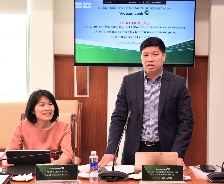 Với mục tiêu trên, hàng năm Vietcombank phối hợp với đối tác tư vấn tiến hành khảo sát, đánh giá ICS và EES. Kết quả khảo sát là công cụ quan trọng để Vietcombank hoạch định các chính sách quản trị nguồn nhân lực, đánh giá hiệu quả công tác phối hợp nội bộ cho các đơn vị và đội ngũ lãnh đạo trên toàn hệ thống.