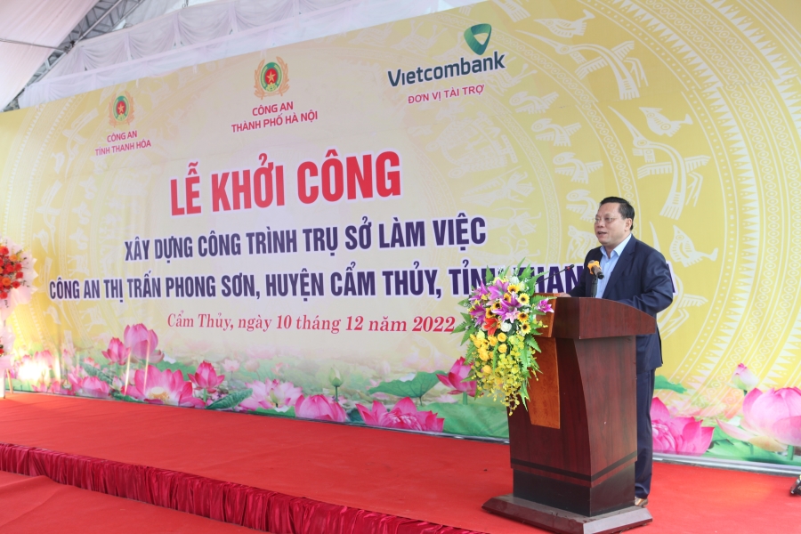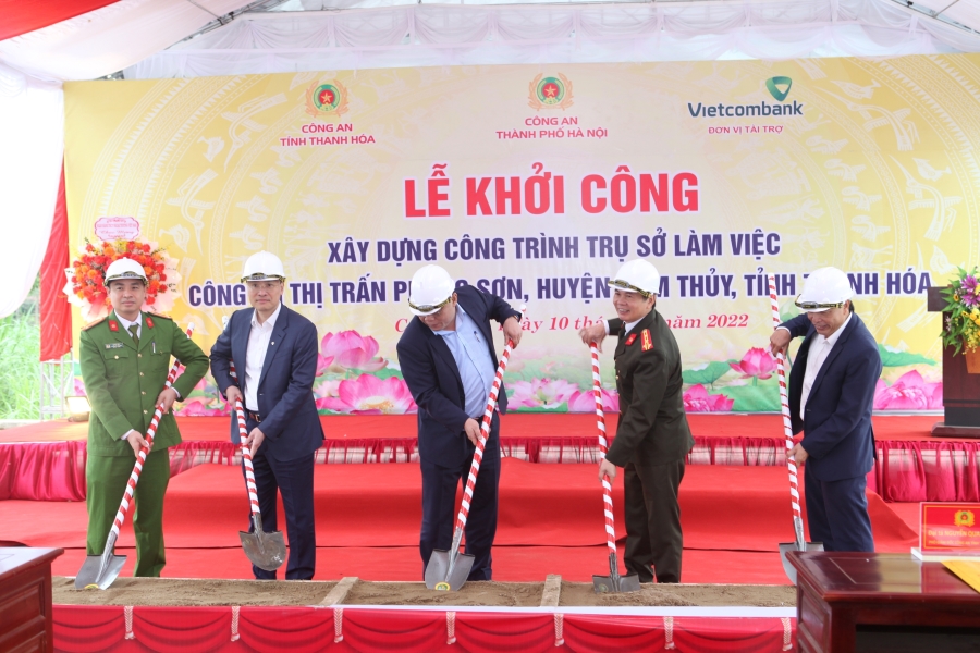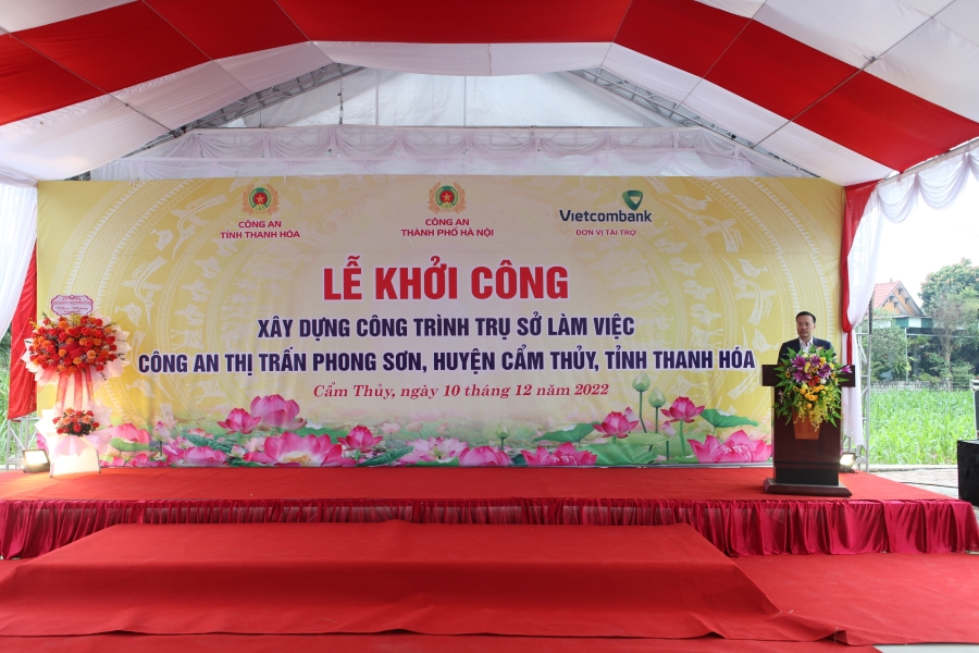 Tham dự Lễ khởi công, về phía Công an TP Hà Nội có đ/c Trung tướng Nguyễn Hải Trung - Ủy viên Ban thường vụ Thành ủy, Bí thư Đảng ủy, Giám đốc Công an TP. Hà Nội và các đ/c đại diện lãnh đạo các phòng/ban của đơn vị; về phía Công an tỉnh Thanh Hóa có đ/c Đại tá Nguyễn Quang Huy - Phó Giám dốc Công an tỉnh; về phía Vietcombank có đ/c Phạm Quang Dũng - Ủy viên Ban thường vụ Đảng ủy Khối doanh nghiệp TƯ, Bí thư Đảng ủy, Chủ tịch HĐQT; đ/c Hồ Văn Tuấn - Ủy viên Ban Chấp hành Đảng bộ Vietcombank, Bí thư Đảng ủy, Giám đốc Vietcombank Sở giao dịch; về phía chính quyền địa phương có đ/c Phạm Viết Hoài - Phó Bí thư huyện ủy, Chủ tịch UBND huyện Cẩm Thủy và đ/c Lê Anh Tuấn - Phó Bí thư Đảng ủy, Chủ tịch UBND thị trấn Phong Sơn, cùng đại diện các ban, ngành, mặt trận Tổ quốc, đoàn thể thị trấn Phong Sơn.