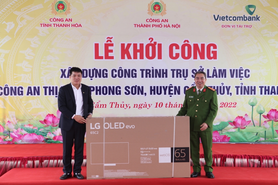 Nhân dịp Lễ khởi công, Vietcombank cũng đã trao tặng cho Công an thị trấn Phong Sơn một tivi trị giá 45 triệu đồng để phục vụ hoạt động.