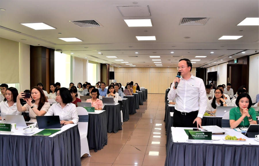 Phó Tổng Giám đốc Lê Quang Vinh nhận định công tác Quản lý Nợ và thẩm định giá là những mảng nghiệp vụ rất quan trọng và được Ban lãnh đạo quan tâm và định hướng tăng cường tập trung hóa. Do vậy, ông đề nghị các học viên cần tập trung nghiên cứu tài liệu không chỉ tại chương trình hôm nay mà cả cho các khóa học sắp tới. Chia sẻ với các thí sinh, Phó Tổng Giám đốc Lê Quang Vinh cho biết thêm thông tin về việc ngay trong năm nay, Ban lãnh đạo đã chỉ đạo tổ chức khóa đào tạo cho đội ngũ cán bộ Quản lý nợ toàn hệ thống với nội dung đào tạo đang được chuẩn bị với nhiều nội dung đổi mới và thiết thực. Ông cũng gửi lời chúc các thi sinh thi tốt và đạt điểm tối đa khi tham dự cuộc thi.