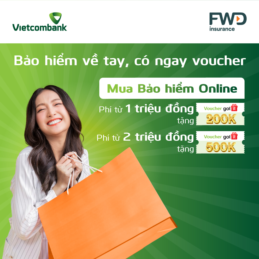 Đặc biệt, từ ngày 05/05/2023, Vietcombank cùng FWD Việt Nam phối hợp triển khai chương trình khuyến mại cho những khách hàng tham gia bảo hiểm online với những ưu đãi hấp dẫn:
