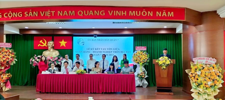 Về phía Vietcombank, bà Nguyễn Thị Tố Hương - Phó Giám đốc Chi nhánh Nam Sài Gòn đã khẳng định đường lối nhất quán trong công tác hỗ trợ khách hàng của Vietcombank, đồng thời cam kết với NHNN và UBND Quận 7, chi nhánh sẽ tiếp tục thực hiện tốt vai trò cung ứng vốn, đồng hành cùng doanh nghiệp trong quá trình khôi phục sản xuất và phát triển kinh doanh.